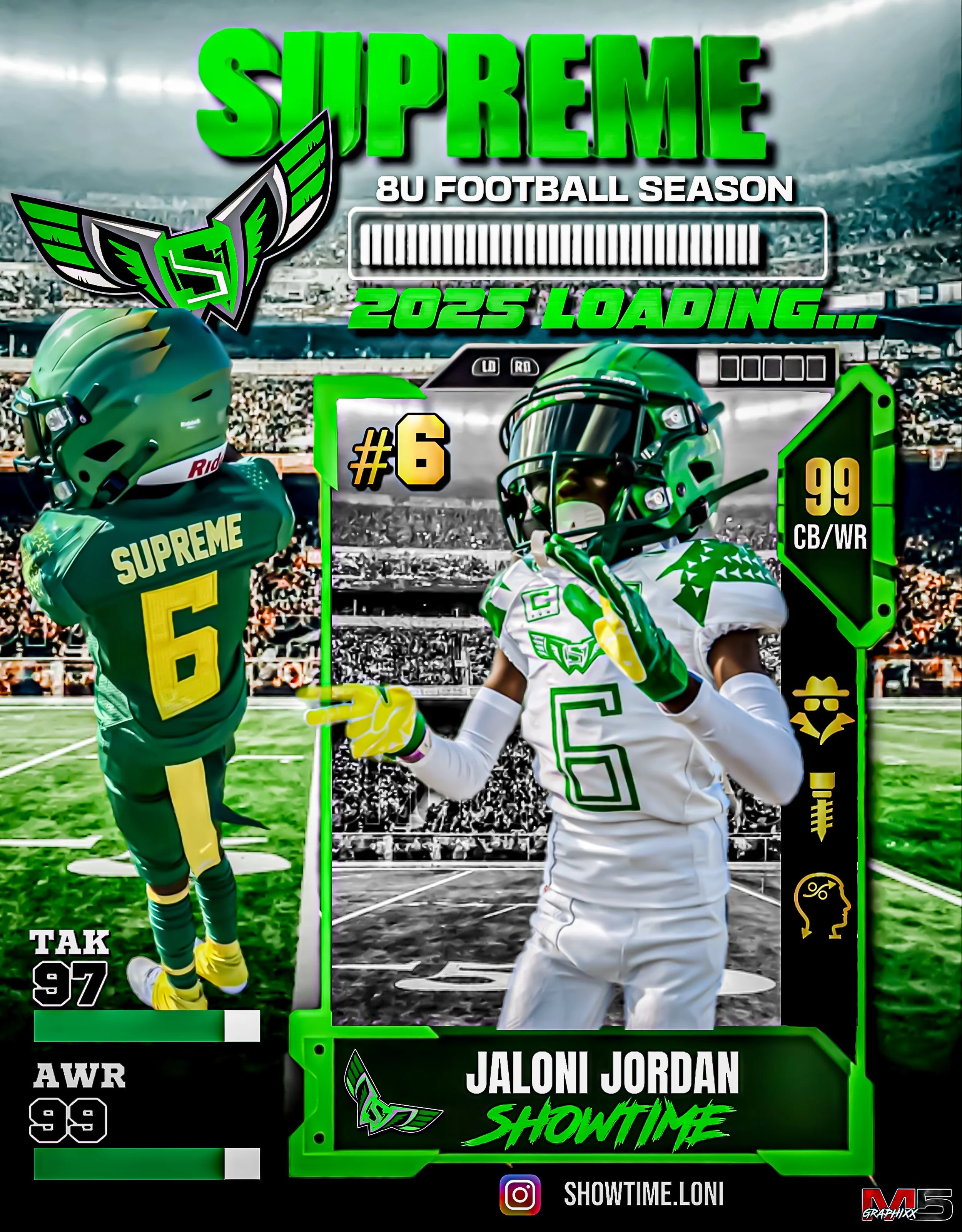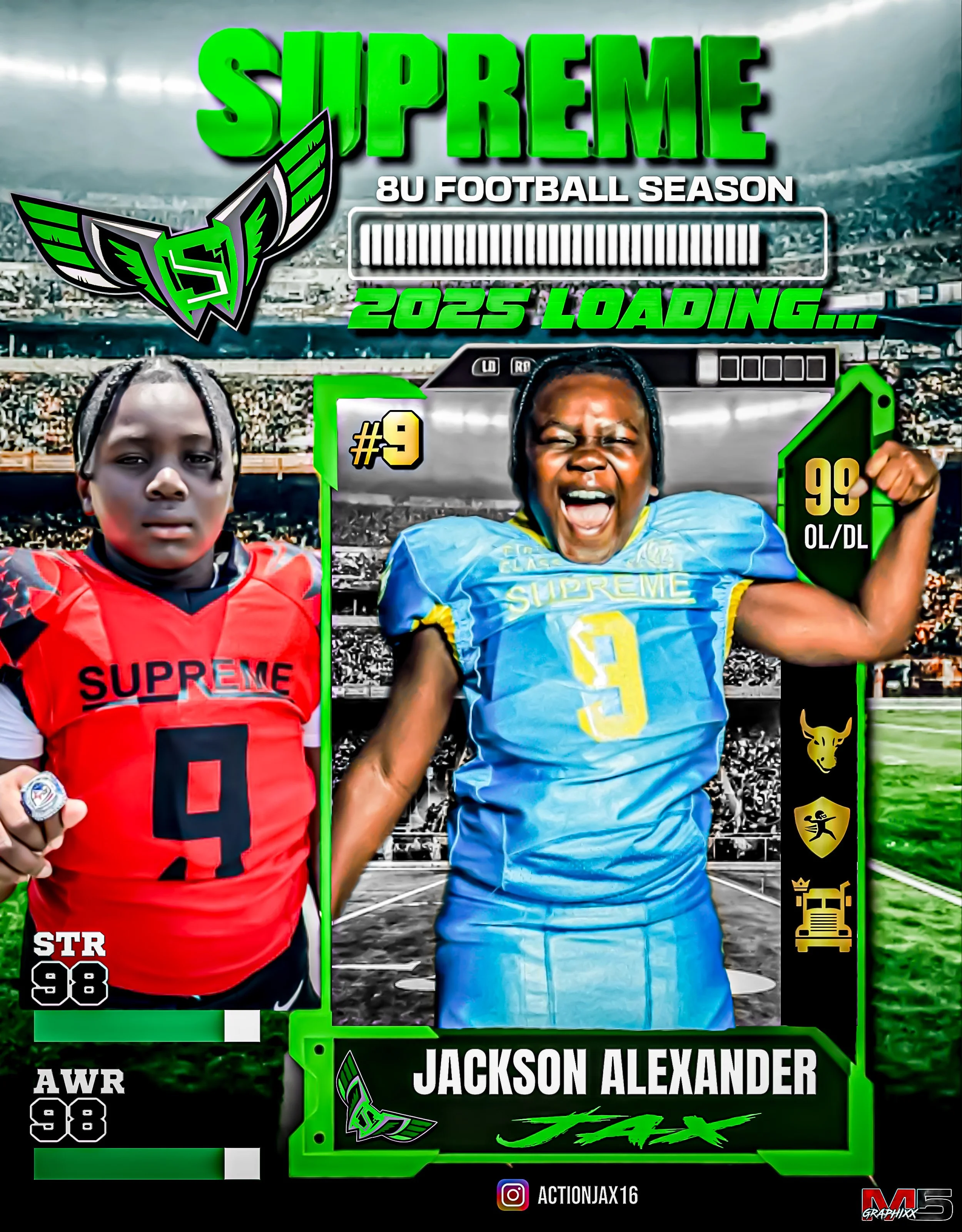 Darren Brown Jr , the kid with the strong support system off the field has a lot to do with how great this kid is. A scat back , but also an every down back bc of the power and load this kid can carry. Supreme is on a 42 game win streak but I’m sure The team doesn’t need Brown to win but they would maybe have a loss or two without this kid. Brown has yet to be stopped In any game. The Honor roll student Is Just as good as any Rb that has played youth ball. There’s more to come.